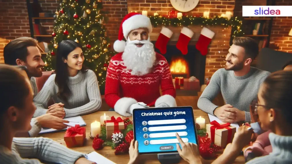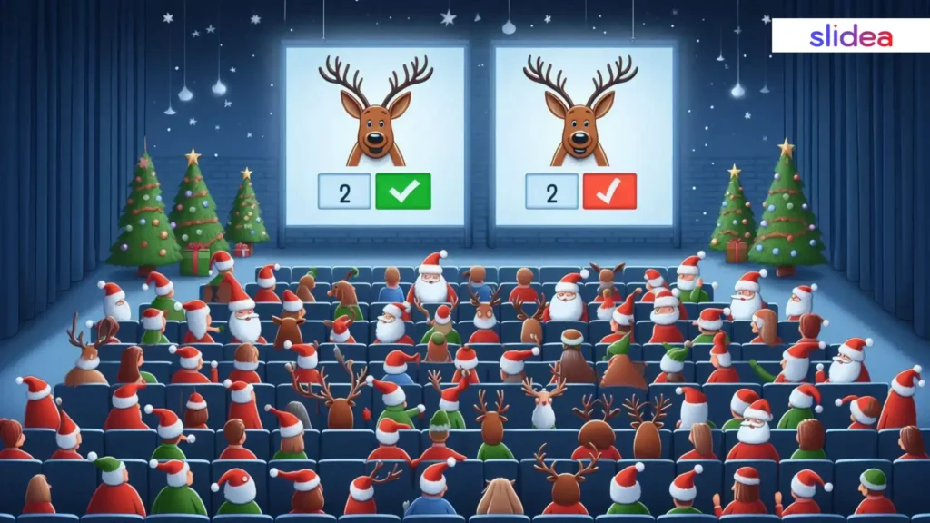 Start your presentation with a classic trivia game. Challenge your listeners by creating questions about Christmas traditions, movies, songs, and history. Use Slidea’s live quiz feature to collect real-time answers and display results instantly. Add a timer to increase the excitement and award small prizes to the top scorers. This game works well for all age groups and is the perfect destruction game for any activity.