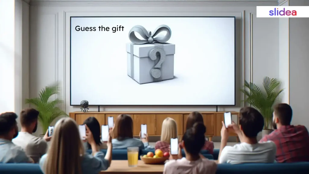 Show a wrapped gift on a slide and give a hint as to what’s inside. Have participants type in their guesses using Slidea’s live input feature, highlighting correct answers with festive animations and award points for closest guesses. This game adds curiosity and excitement to your presentation.